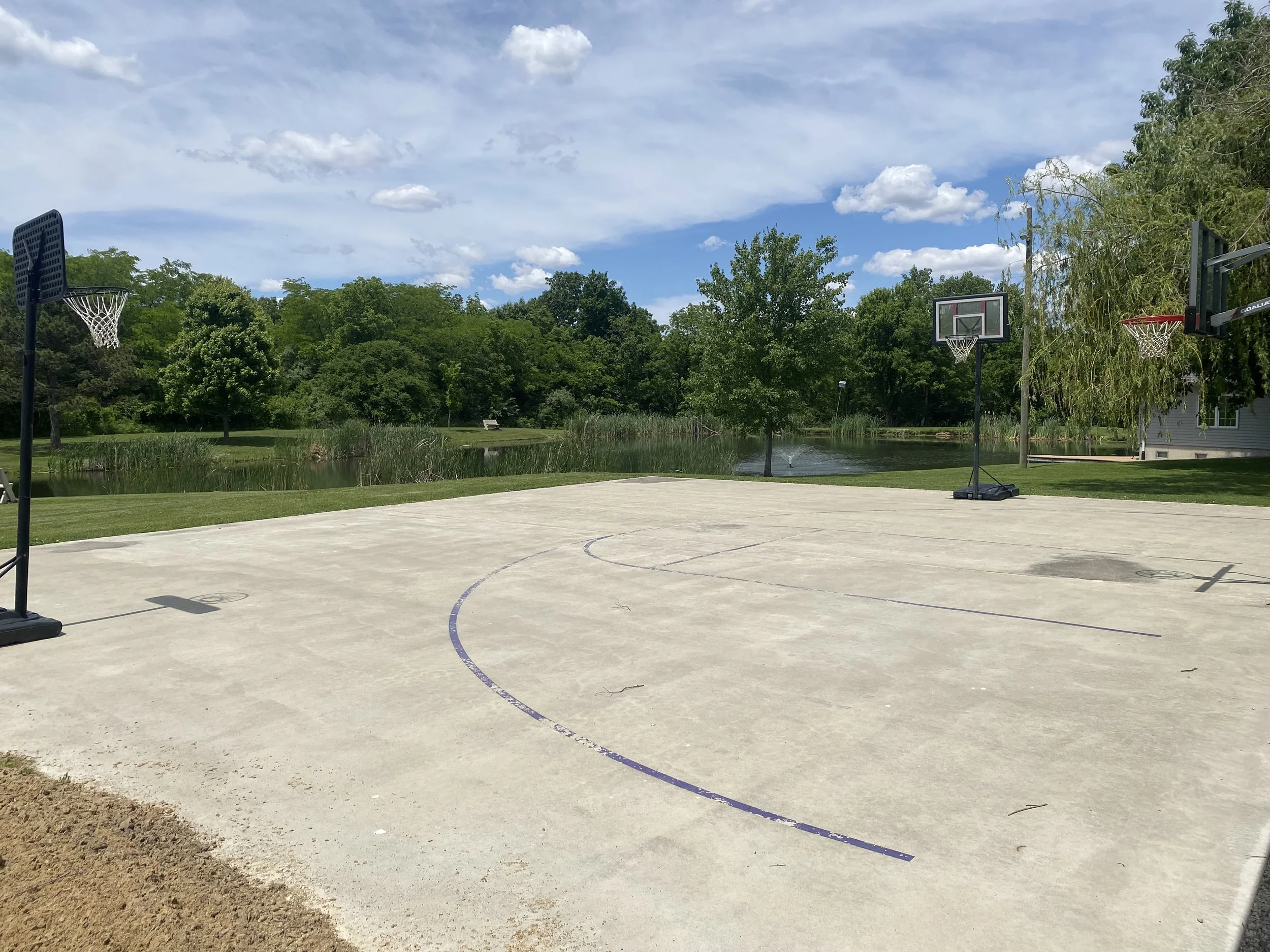sleeps up to 12 guests (with 9 beds) and includes access to a catch and release fishing pond, an inground pool, sand volley ball, and a concrete basketball court/game area.