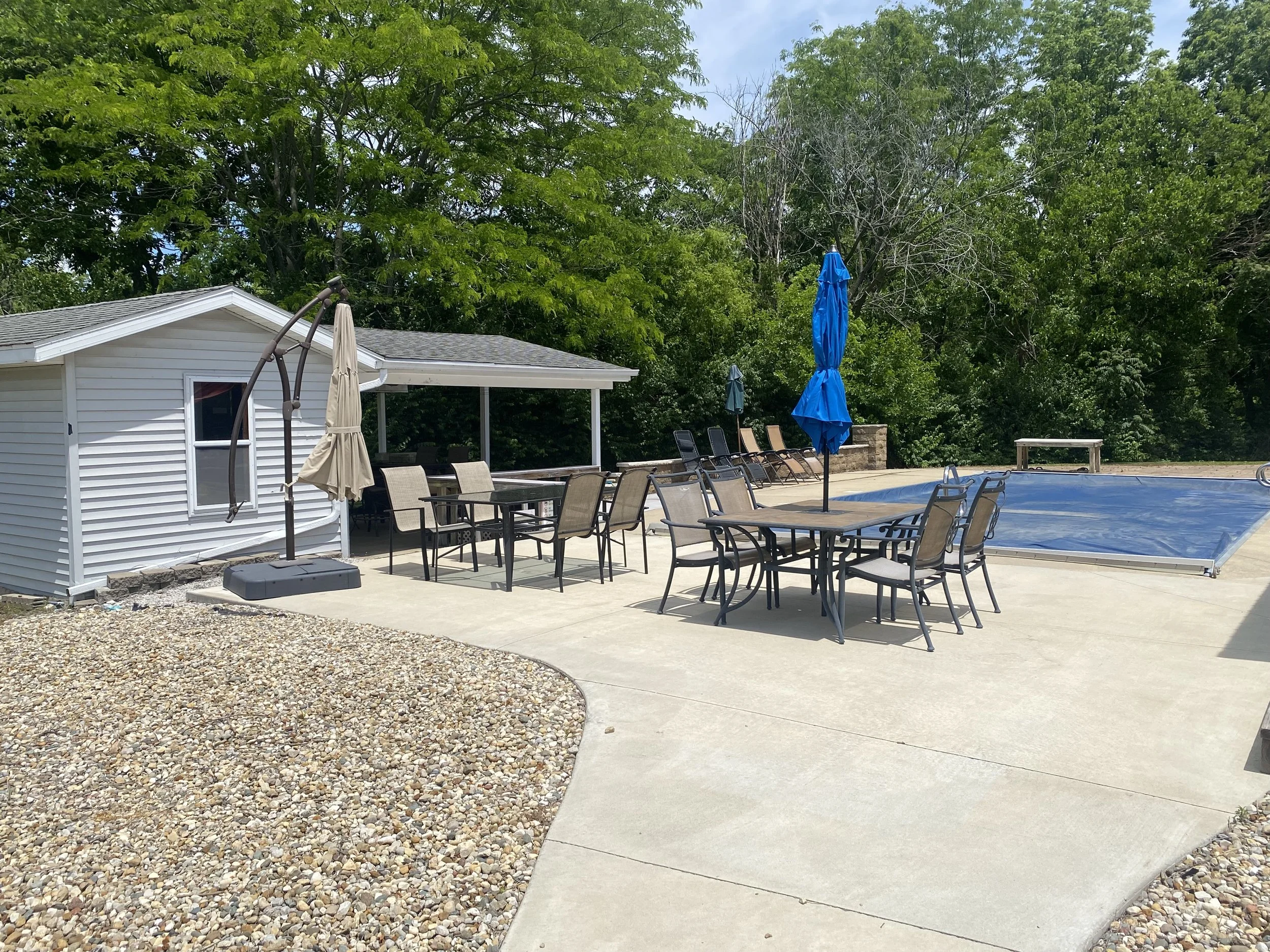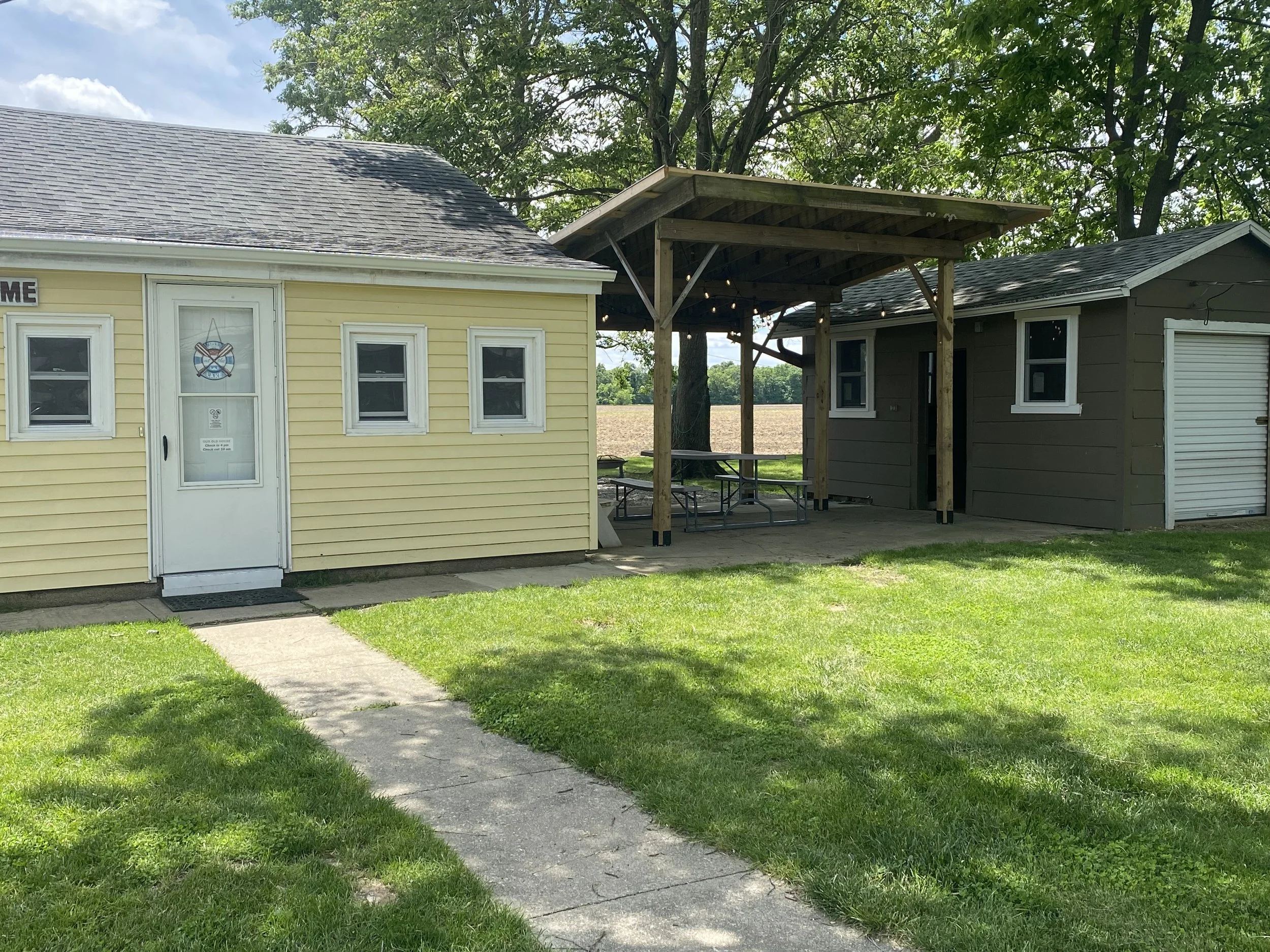 About 1 1/2 miles north of the cabins, you’ll find House 1. This is our largest property and sits on about 5 acres. It is a 3 bedroom house with a total of 9 beds (1 queen, 2 full and 6 twins). There is a dining area, living room, kitchen, and 2 bathrooms. This house has access to a fishing pond, a concrete basketball/play area, and an inground pool.